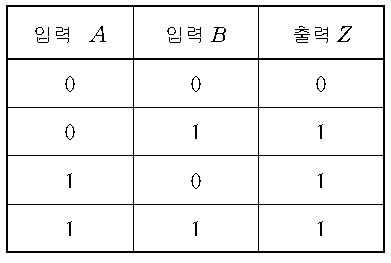 A와 B 중 하나라도 High 인 경우 D1 또는 D2를 통하여 Z가 High가 된다. A와 B가 모두 0인 경우 D1과 D2가 차단상태가 되어 R1의 Low가 Z에 출력된다.