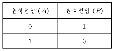 A가 TR의 베이스 단자에 연결되어 있고 이미터 단자가 0V 이므로 TR의 턴 온 상태인 0.7V 이상이 되면 TR이 턴 온되어 0V가 출력되고 반대인 경우 RL을 통하여 Vcc 전압이 출력된다.
