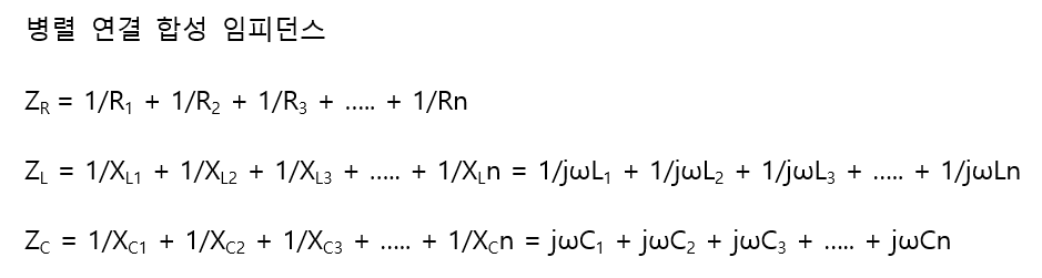 여기서 C와 L은 주파수에 대해 변화가 있는 값이므로 실제 실무에서는 정확한 값을 계산할 때를 제외하면 그냥 R과 L은 직렬시 SUM 값이 더해지고 C는 병렬이 값이 더해진다라고 이해하고 해석하는게 대부분이다.
