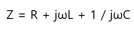 이다. 당연히 직렬 연결이니까.....그런데 여기에서 XL과 XC는 리엑턴스 (L과 C의 임피던스를 나타내는 말)로 표기되어 있는 것이라 허수부가 존재한다. 허수부가 존재하는 이유는 R은 이론적으로는 주파수에 독립적이라 주파수가 변함에 따라 바뀌지 않지만 L과 C는 주파수에 따라 임피던스가 변화한다. 그래서 주파수에 대한 식으로 표현하면 아래와 같다.