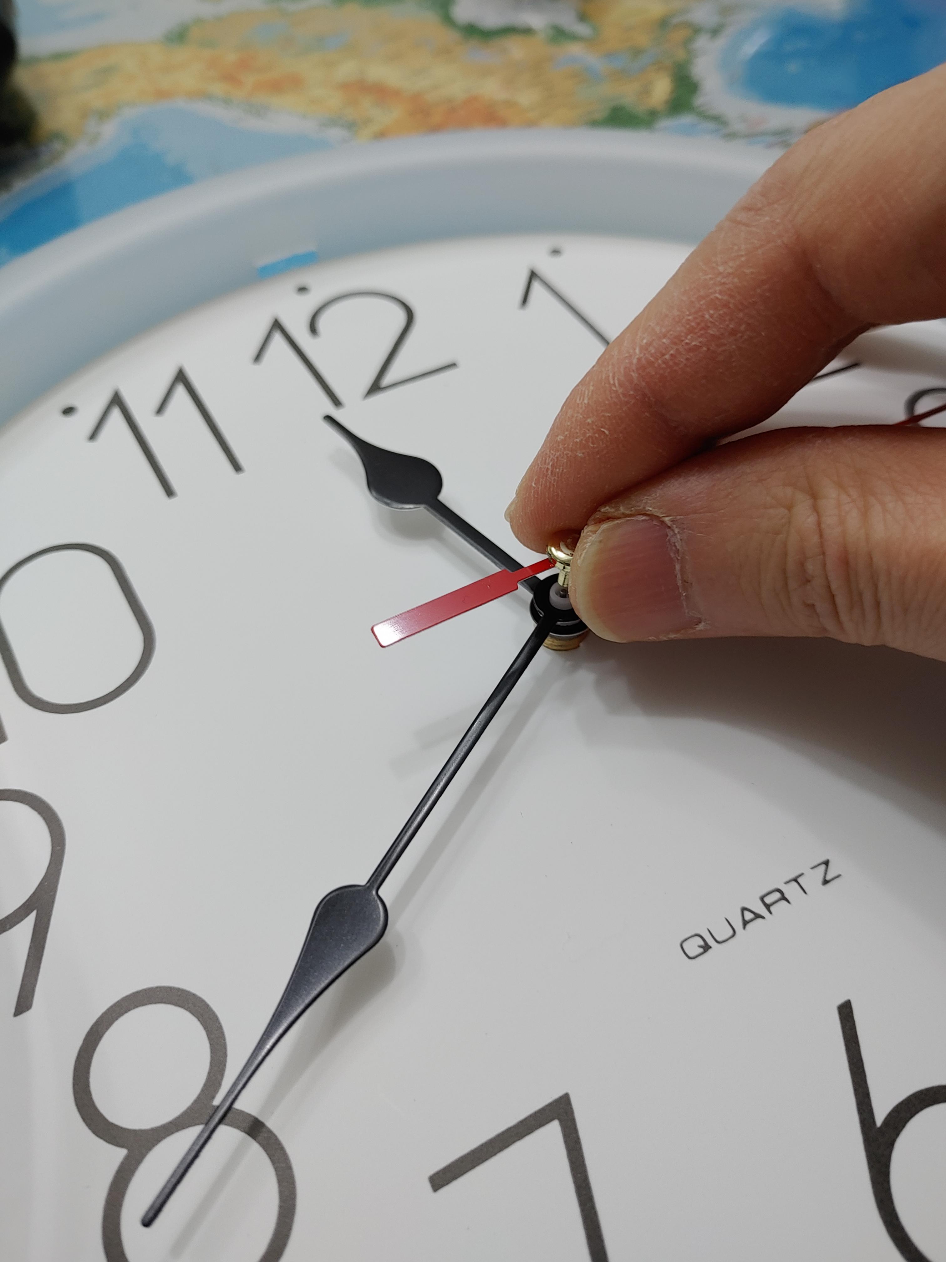 8. 시분초 침을 다 고정하고 회전할때 서로 걸리지 않는지 확인한다.