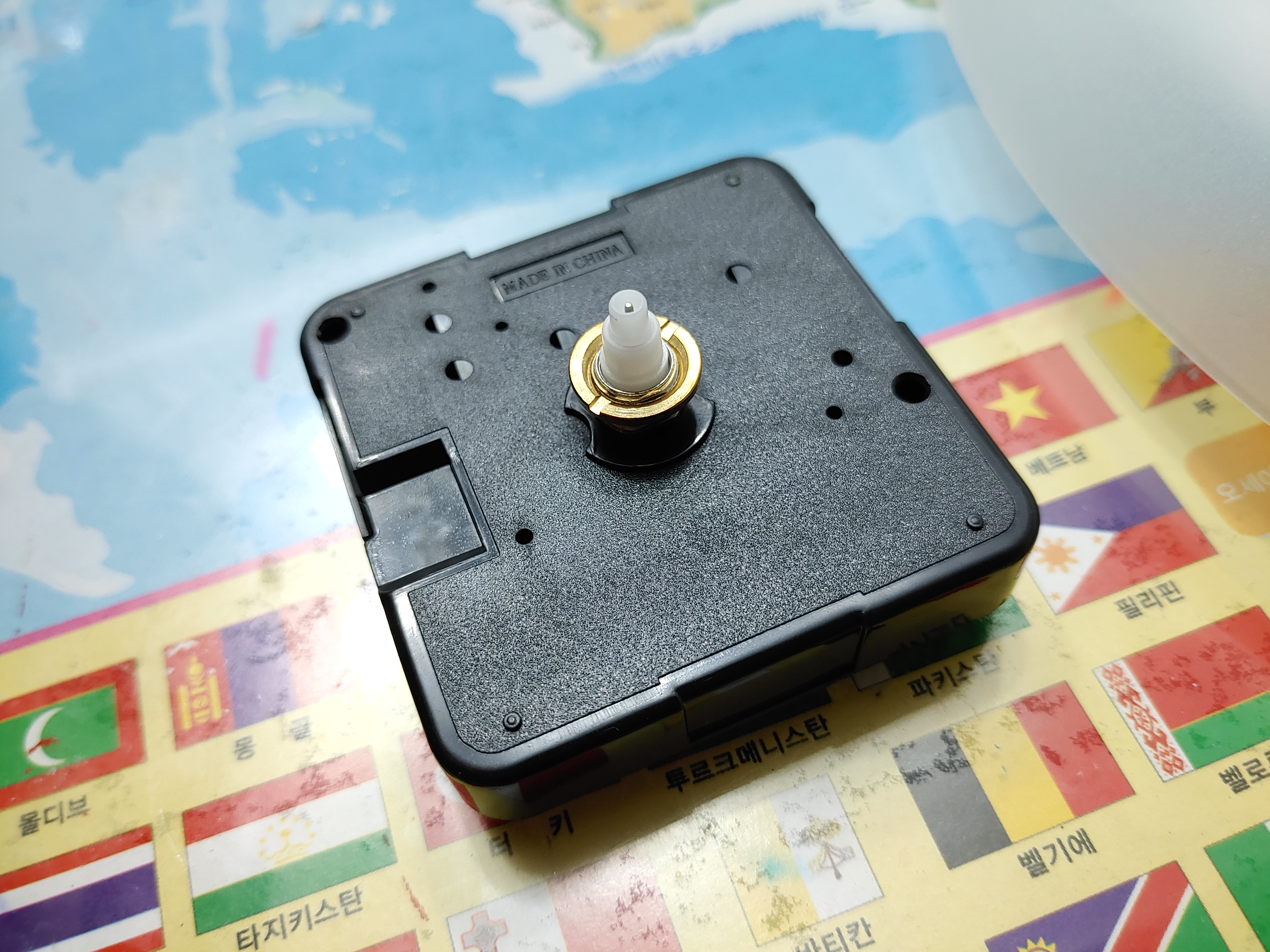 7. 보면 시침이 크기가 맞지가 않다....ㅠ.ㅠ....사실 난 그래서 뒷면에 튀어나와 있는 부분을 뭉게서 대충 맞추었다. 뭐 대강 고정만 되면 되니까 뭘 채워 넣든 해서 해당 기둥에 고정하면 된다.