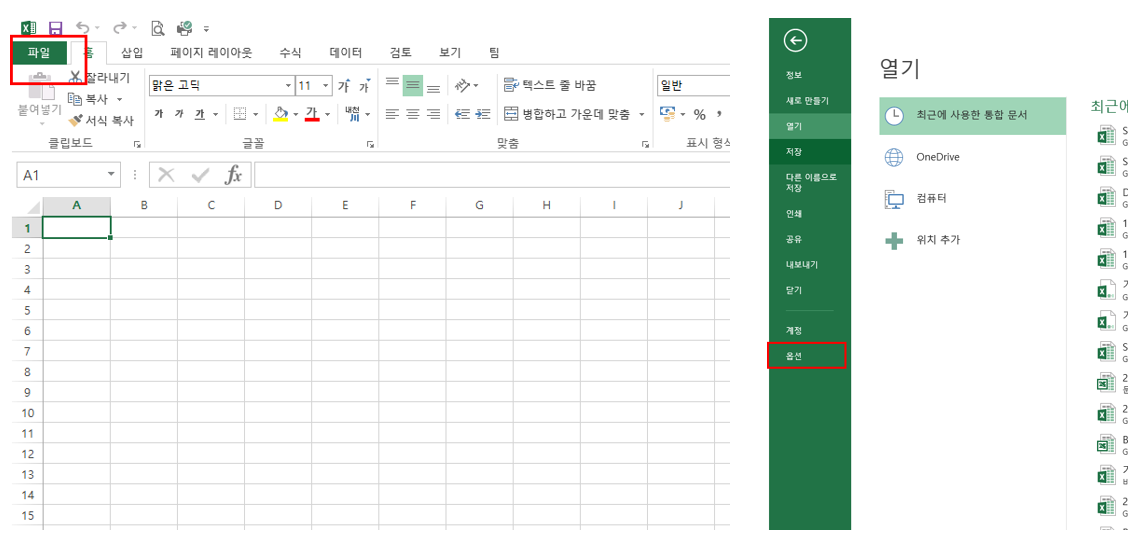1. 파일->옵션을 선택한다.