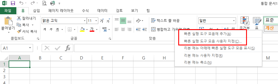 빠른 실행 도구라는 것은 엑셀에 가장 상단부에 위치한 메뉴로 자주 사용하는 기능을 바로 사용할 수 있게 등록하여 사용하는 것이다.