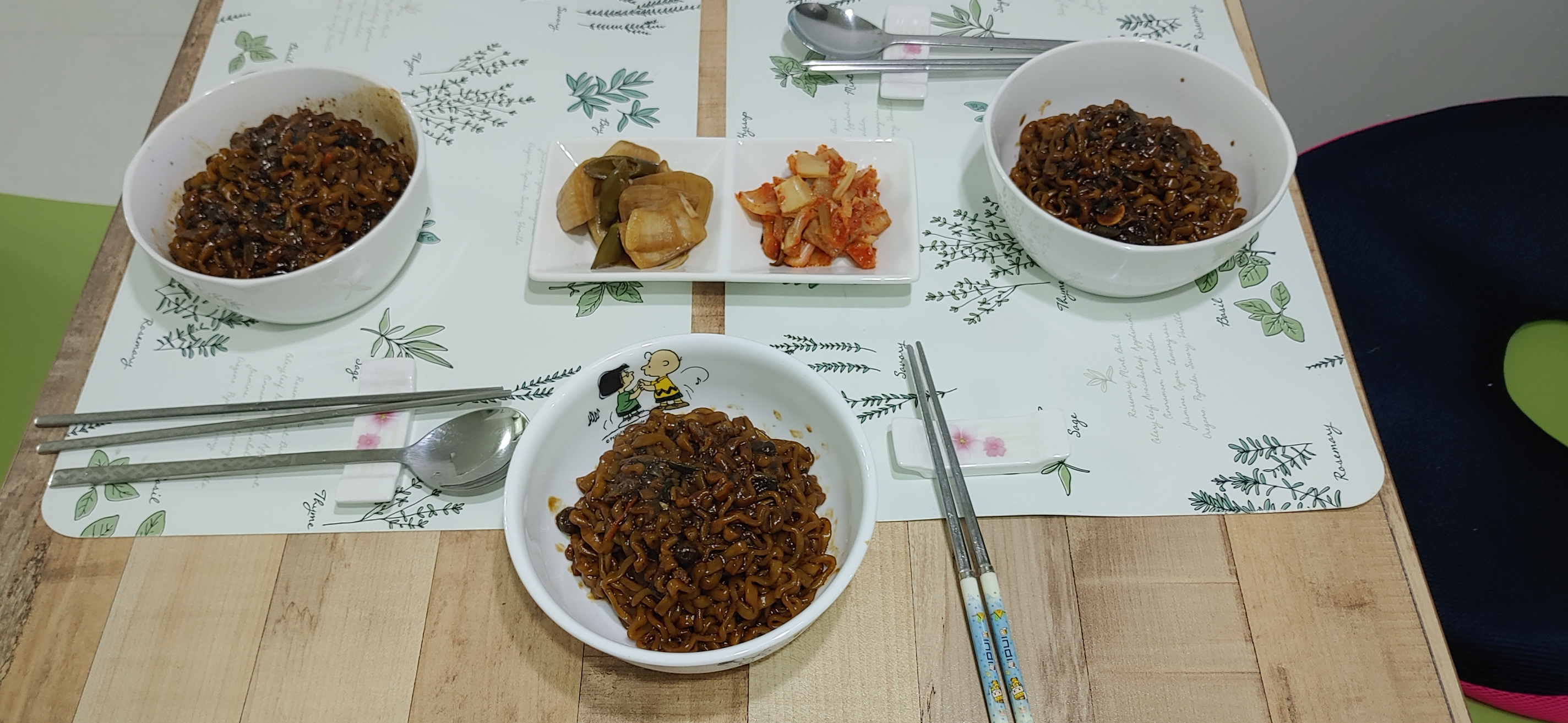 1. 짜장 준비......나도 먹어야 하고 그리고 요즘은 덜 매운 라면도 아들이 먹기에 짜빠구리 형태로 진짜장+진라면 순한맛을 준비했다.