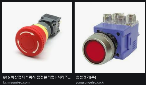 b 접점의 경우 대표적인 것이 장비의 긴급 정지 스위치, 또는 가전제품의 전원 버튼 등에 사용되지만 사실 전원 같은 경우는 확실한 접점을 위해서는 토글을 많이 사용하는 편이라 최근에는 예를 찾기 좀 힘들다. 뭐 찾기 힘들더라도 유심히 주변 관찰을 해보면 한두개 씩은 보일 것이다. 아래 첫번째는 a접점 , 두번째는 b접점 스위치의 대표적 예이다.