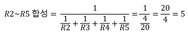 만약 R2~R5의 저항이 다르면 각각의 전류를 구하면 된다.