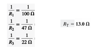 저항의 병렬은 전체의 전류가 분기가 되지만 흐르는 경로가 많아짐으로서 전체 저항은 저항의 분기가 많아질 수록 감소한다. 그만큼 전류가 흐를 수 있는 통로가 많이 생겨 전류가 원활히 흐를 수 있기 때문이다. 합성 병렬 저항의 계산은 아래와 같이 저항의 역수의 합의 역수이다. 쉬운 표현을 위해 저항의 역수를 G라고 표기하며 컨덕턴스라고 읽는다.