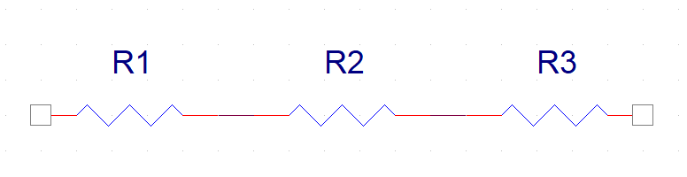 저항이 직렬로 연결될 때, 전류의 통로는 오직 하나이므로 각 저항을 통해 흐르는 전류는 같다. 저항이 직렬로 연결되면, 각 정항이 그 저항에 비례하여 전류의 흐름을 방해하기 때문에 그 저항 값들을 합산한다. 직렬로 저항이 연결될 수록 전류의 억제량은 증가하고 이는 저항이 증가함을 나타낸다. 따라서 저항이 직렬로 더해질 때마다 전체 저항은 증가한다.