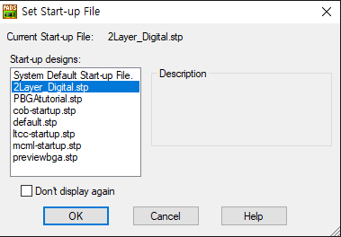 방법은 간단하다. 기본적인 설정들을 완료 후 stp 파일을 저장한다. 기본적인 설정은 앞서 말했듯이 레이어 설정, Via 설정, Layer 설정, CAM 설정 등을 한다. 다른 부분도 있겠지만 나 같은 경우는 다른 설정은 기본으로 놓고 언급한 설정을 Layer에 맞추어 저장한다. 즉, 2Layer 설정, 4Layer 설정, 6Layer 설정, 8Layer 설정, 4Layer_RF 설정 등 레이어의 층수와 특징에 맞추어 기본 설정들을 하고 저장해 놓고 불러다 사용한다.