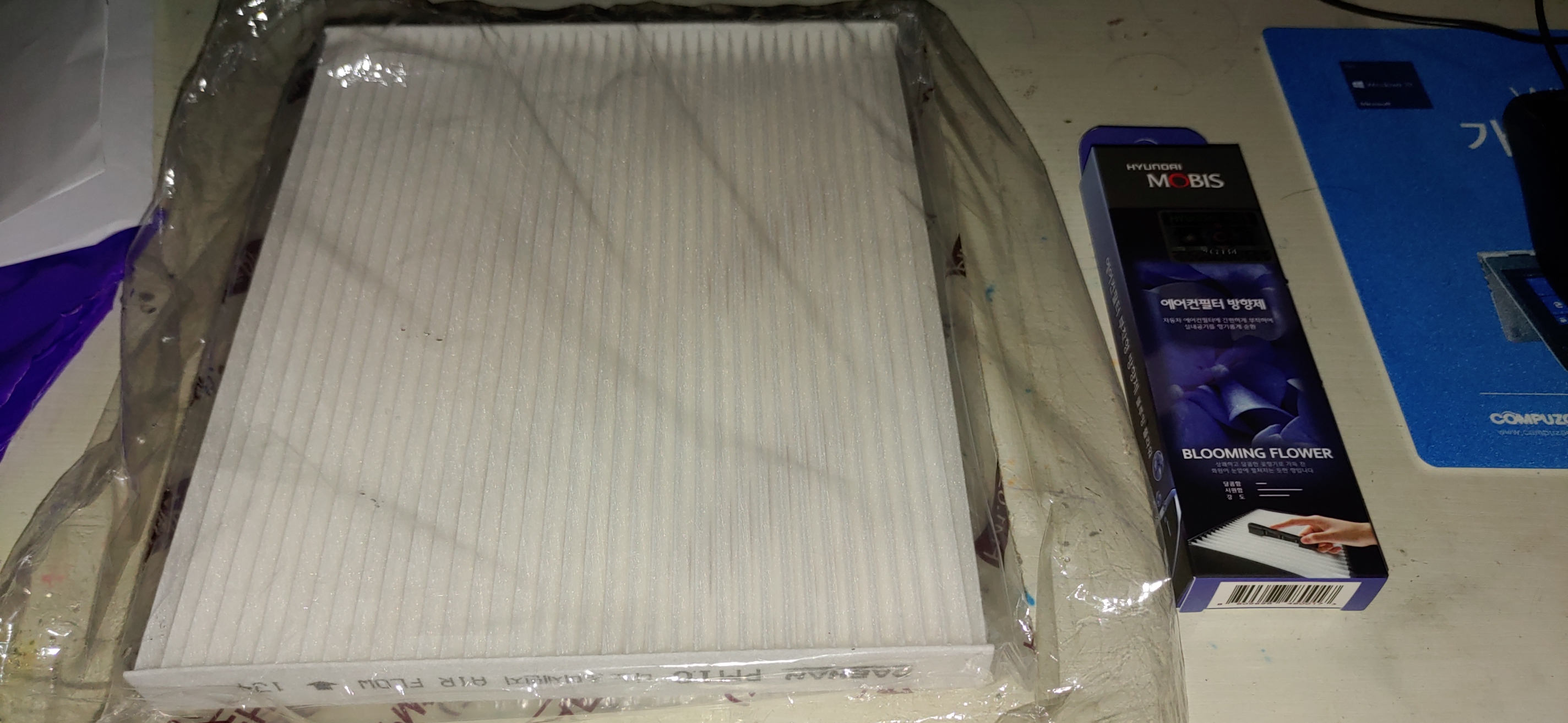 에어컨 필터를 교체하고 방향제까지 달고 에어컨을 틀어보니 공기가 다른 듯 했다. 참고로 차량 공기 청정기 같은거 구매하지 말고 이 에어컨 필터를 좋은 것으로 갈고 자주 가는게 더 차량 공기 정화에는 유리하다. 외기가 들어오는 것도 이 필터를 통해서 들어오는데 들어오는 공기를 걸러주는게 정답이지 더러운 공기가 들어오게 하면서 그걸 정화하겠다는 발상은 좀 아니라고 본다. 난 가장 저렴한거 그냥 샀는데 필터도 종류가 여러가지이니 좋은 필터 사서 넣으시고.......