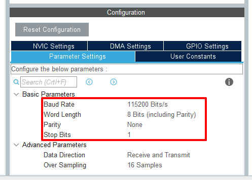 Connectivity에서 USART를 선택 후 모드를 정의하고 흐름제어를 선택한다. 대부분 USART는 비동기를 사용하고 흐름제어가 없이 하는 것이 일반적이니 Asynchronous, Disable를 선택하면 된다.