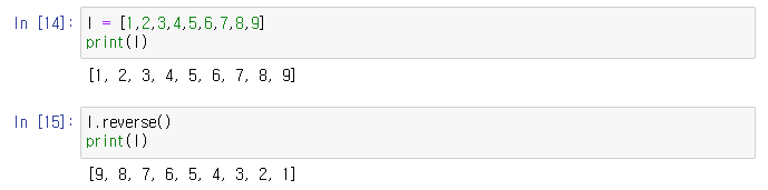 3. reverse 함수 : 값을 거꾸로 정렬한다.
