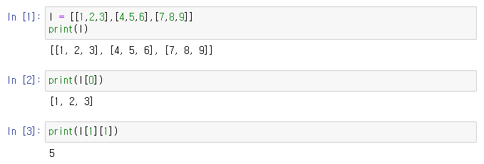 리스트는 다른 언어에서의 배열과 비슷하다고 언급했었다. 그렇기 때문에 마찬가지로 다차원 배열로 사용이 가능하다.