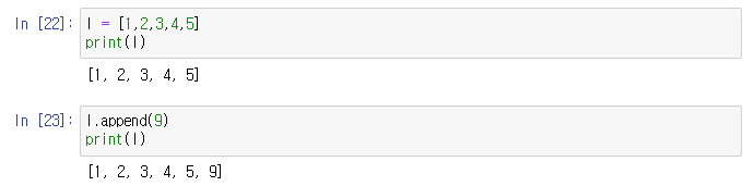 5. append 함수 : 해당 값을 요소로 추가한다. 마지막에 insert 함수를 사용한 것과 같다.