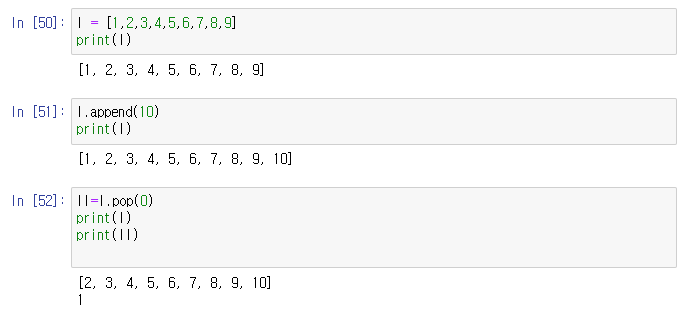 2. 큐(Queue)로 활용 : 리스트를 큐로 활용이 용이하다. append는 마지막에 요소를 추가하고 pop는 요소를 꺼낼 수 있기 때문에 이 두 명령으로 큐를 쉽게 구현이 가능하다.