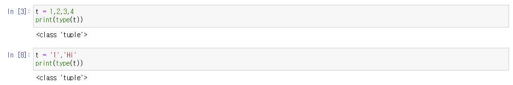 사실 튜플형은 소괄호로 정의를 안해도 문제가 없긴 하다. 그러나 다른 예외 상황도 발생할 수 있기 때문에 형식을 지켜서 정의하는 것이 좋겠다.