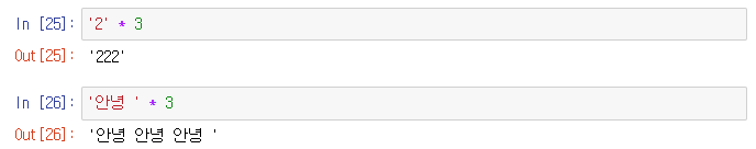 2. 반복 연산 : * 연산자로 문자나 문자열을 반복할 수 있다.