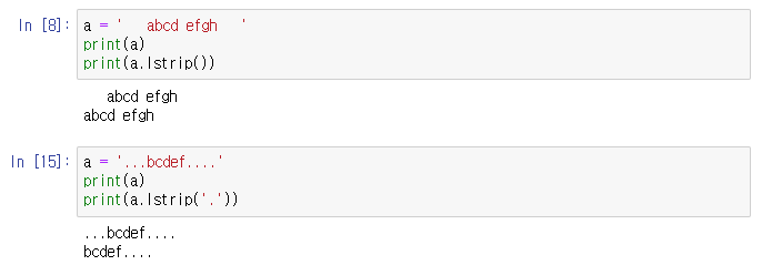 7. istrip() : 문자열 왼쪽 끝을 잘라낸다. 인자에는 문자가 들어가고 기본은 공백이다.