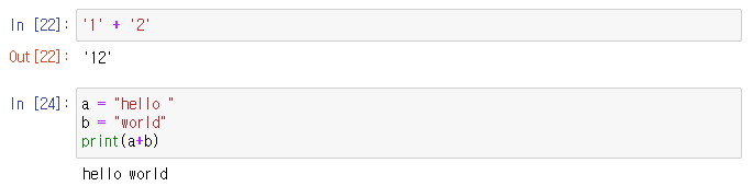 1. 연결 연산 : + 연산자로 문자를 합치거나 하나의 문자열로 합칠 수도 있다.
