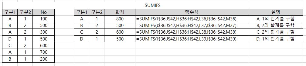 <형식> SUMIFS(Sum_range, Crieria_range1, Criteia1, Crieria_range2, Criteria2, ......)
