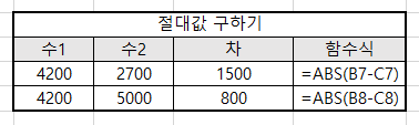 ABS 함수는 숫자의 부호에 상관 없이 크기만 나타내는 절대값으로 계산하는 함수