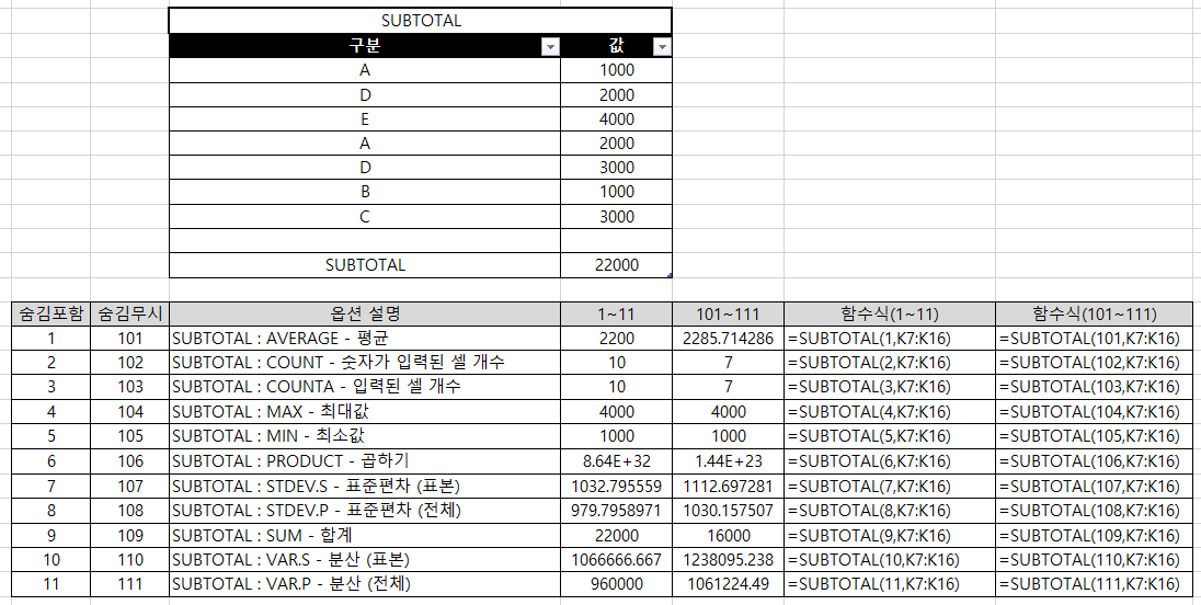 8. SUBTOTAL 함수