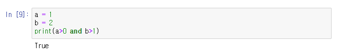 and : 모두 참인 경우 참, 당연히 역으로 하나라도 거짓이면 거짓