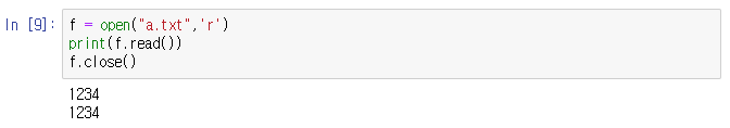 파일 읽기는 r모드로 read() 함수로 파일의 전체 내용을 불러올 수 있다.