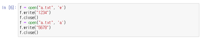 4. a (추가모드) : 파일을 추가 모드로 연다. 기존 파일의 내용의 끝에 새 내용을 추가하여 기록한다.