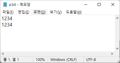 a모드일 경우 기존 파일에 새로운 내용을 추가하기 위해 사용한다. 해당 파일명이 없다면 파일이 생성된다.