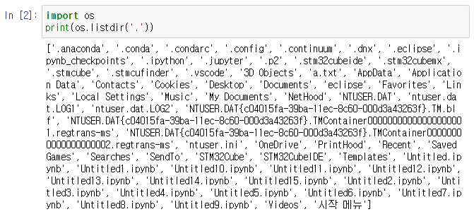 1. listdir : 해당 디렉토리의 파일 목록을 반환한다. .은 현재 디렉토리를 의미하고 ../는 부모 디렉토리를 의미한다.