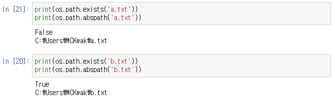 4. path.abspath : 파일의 존재 유무와 관계 없이 해당 파일의 절대 경로를 반환한다.