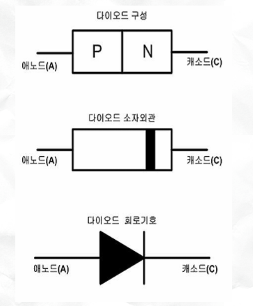 다이오드는 N형과 P형의 반도체의 접합으로 한쪽 방향으로만 전류가 흐르도록 만들어진 부품이다. 전류가 흐르는 방향을 순방향, 반대방향을 역방향이라고 하는데 이 점을 이용하여 극성 및 불량을 판별이 가능하다.