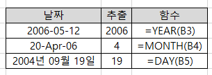 * 인수 : 날짜 형식의 데이터