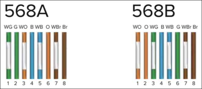 이 568A와 568B를 양쪽을 같게 하면 다이렉트 케이블, 한쪽은 568A 다른 한쪽을 568B로 하면 크로스 케이블이 된다.