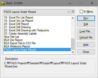2. Tools->Basic Scripts->Basic Scripts...을 선택한다.