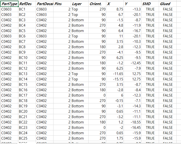 PCB를 제작한 후 SMT를 치기 위해서는 좌표 데이터가 있어야 SMT 업체에서 작업을 해 준다. 좌표 데이터는 각 부품에 대한 기준점에서 부터의 X,Y 좌표다.
