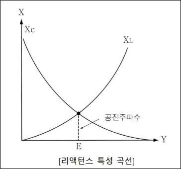 앞서 말했듯이 주파수가 증가한는 경우는 Xc는 감소하고 XL은 증가하며 이 리액턴스가 일정 주파수에서 교차가 되며 이 교차점이 공진점이 된다.