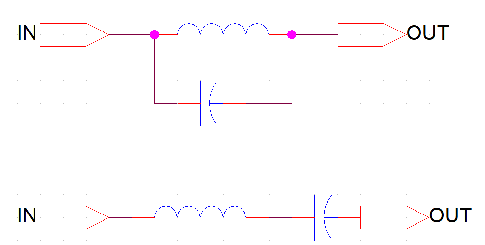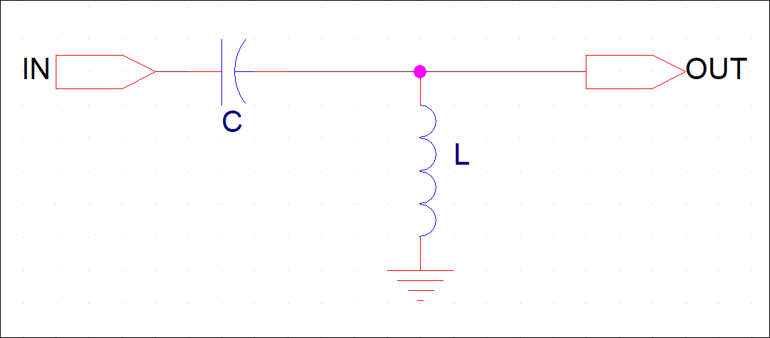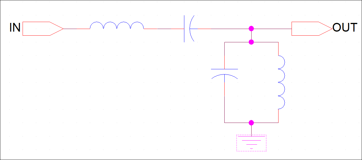 이러한 특성을 조합해보면 특정 대역만을 통과시키는 BPF를 설계할 수 있는데 L과 C의 병렬 또는 직렬 조합이 신호 경로에 넣는 경우와 GND로 빼주는 경우를 만들면 된다.
