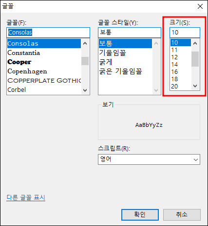 위와 같이 하면 되는데 뭘 잘못 눌렀으니 바뀌어졌다고 생각되서 단축키를 찾아봤다. 위에 휠로는 안되고 다른 에디터는 Ctrl+'+'는 확대, Ctrl+'-'는 축소여서 눌렀더니 축소는 되는데 확대는 안되었다.