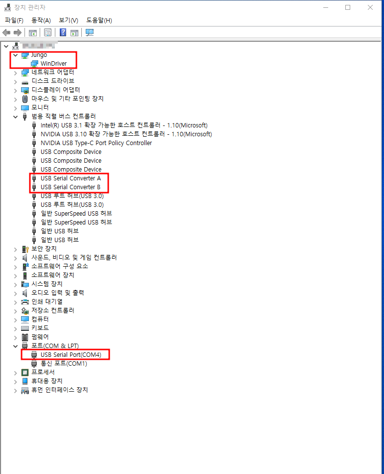 여튼 확인 방법은 Zybo 보드를 연결하고 장치 관리자를 확인해 본다. 정상적인 경우는 이렇게 3가지 항목이 모두 나타나야 한다.