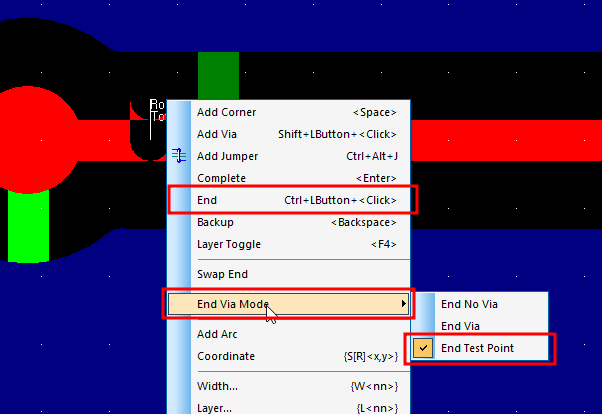 참고로 이게 생기는 이유는 라우팅 중에 End를 했을 때 End Via Mode가 Test Point로 되어 있을 경우이다.
