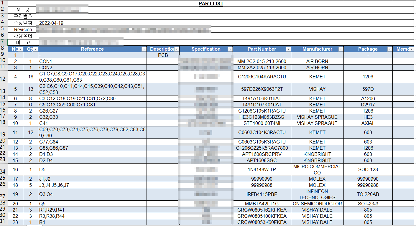 일단 최소한 부품 리스트는 있어야 한다. 단종 상태 확인의 경우 사용 수량은 중요하지 않으니 부품명만 있으면 된다.