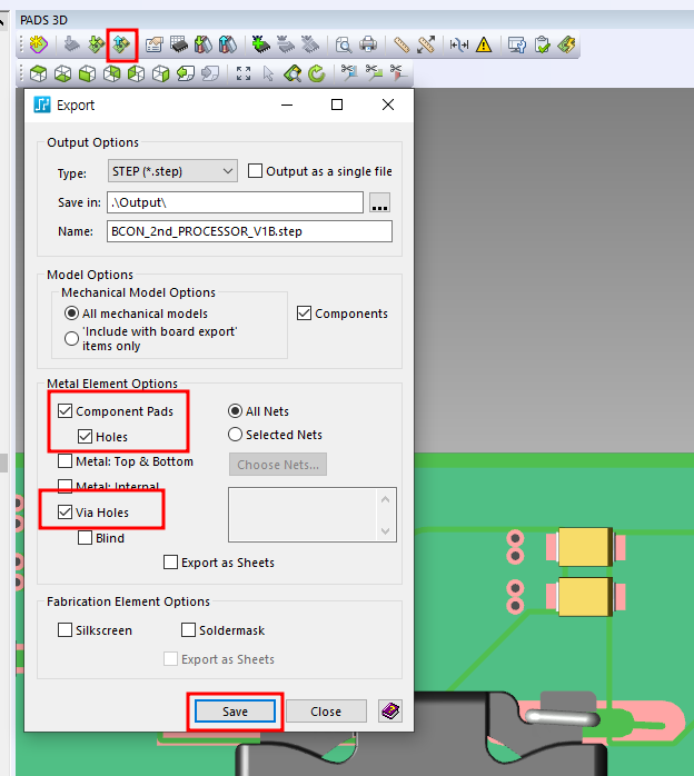 그런데 이렇게 하려면 각각의 부품을 다 HOLE 특성을 넣어야 하기 때문에 굉장히 번잡스럽다. 그래서 내가 개인적으로 좀 많이 만져보니까 3D에서 Export할 때 특성을 넣을 수 있다.