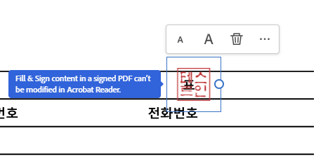 3. 등록된 사인이나 도장등의 이미지를 끌고 옆에 위치에 놓는다. 이미지를 놓아보면 두 이미지가 겹쳐서 도장을 찍은 것 처럼 구현된다.